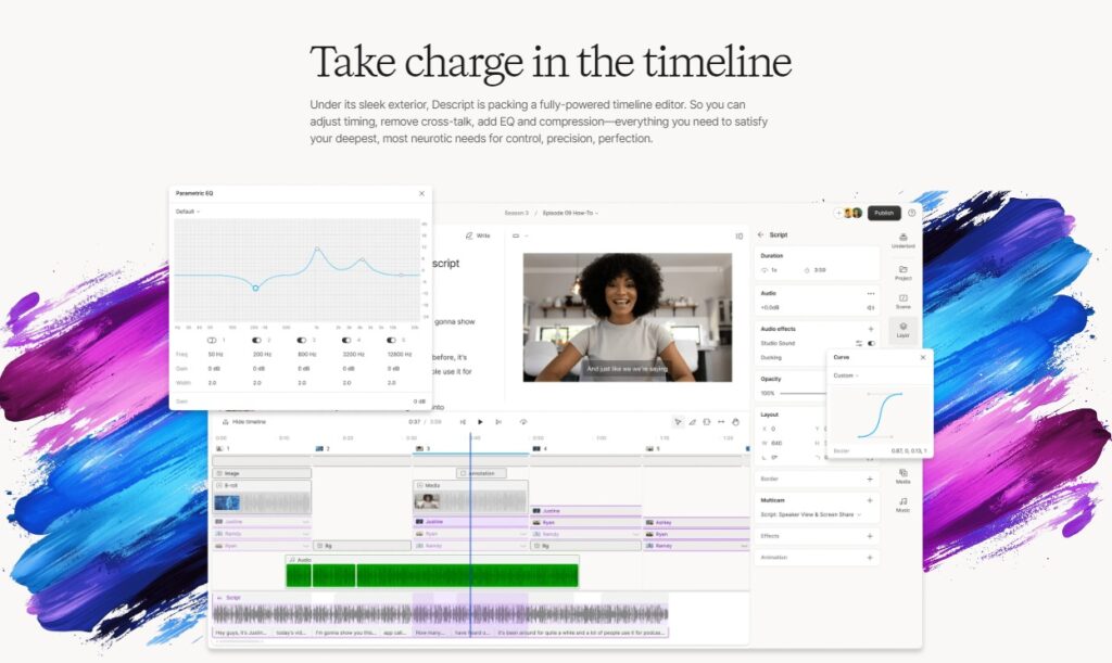 - Descript – a single platform for editing video and audio using simple text-based editing.