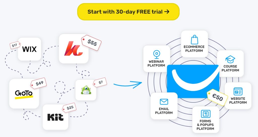 - Systeme.io – an all-in-one platform to manage your website, email marketing, sales funnels, online courses, and more.